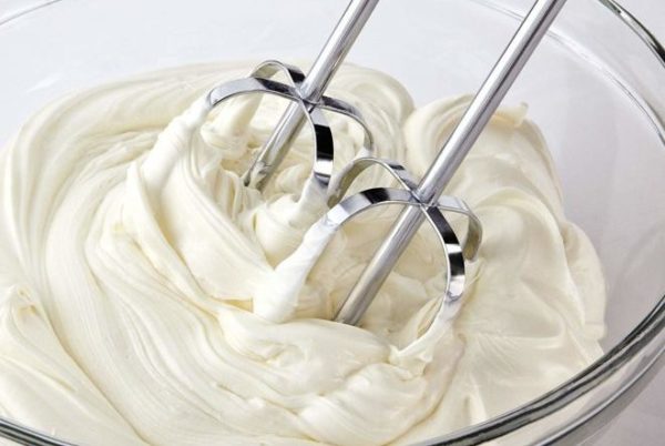 • Đặt bát trộn vào 1 âu đá to hoặc để que đánh trong tủ đá khoảng 15 phút trước khi đánh kem, chú ý không để kem bị tách nước. Đánh đến khi hỗn hợp mềm, mịn, có vân nổi lên nhấc lên có chóp mềm thì dừng lại.