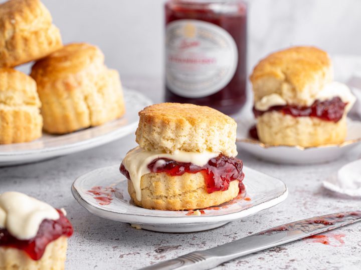 Scones là loại bánh nổi tiếng của Anh, có kết cấu gần giống như muffin của mỹ nhưng ít bơ và đường hơn nên không gây cảm giác ngán. Bánh có mùi thơm nhẹ của bơ, trứng, thường được ăn kèm với các loại mứt trái cây và kem tươi. Bạn sẽ ngây ngất với hương vị ngọt ngào của nó khi nhâm nhi cùng một tách trà nóng hoặc latte.