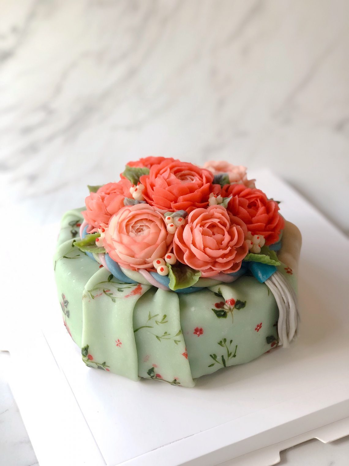 - Còn phần nút buộc thì cán một miếng bột nhỏ, gập đôi lại và đặt giữa cánh hoa. Sau đó, dùng bột nhũ kim trang trí tùy thích.