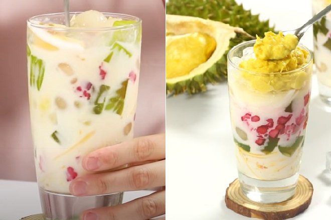 Là món chè được nấu từ đậu xanh cà vỏ với nước cốt dừa, đường phèn. Sau đó thêm vào các laoij thạch, củ năng, mít xé sợi, và dĩ nhiên không thể thiếu sầu riêng dầm béo ngậy. Món chè tươi mát này ăn kèm với đá thì ngon hết sẩy.