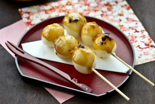 Món bánh này cũng làm từ bột nếp, vo tròn làm thành từng viên nhỏ sau đó xiên vào cây và rưới lên bánh một lớp mật mía. Đây cũng là thức ăn dễ gặp trên đường phố Nhật Bản cùng với các loại cá viên, tôm viên chiên… Bánh thường để quanh bếp than và được nướng trước khi ăn, rất hấp dẫn.
