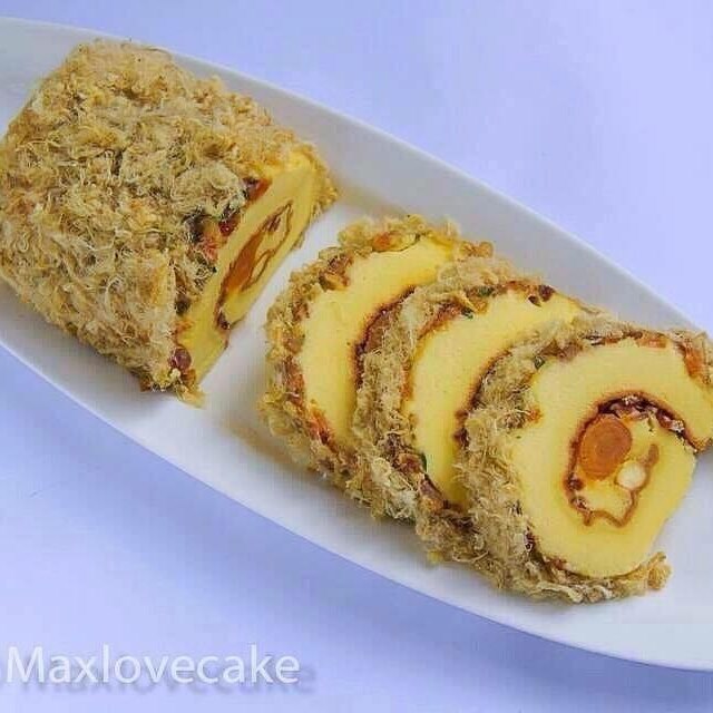 Riêng với bánh bông lan trứng muối, Max Love Cake đã làm kết hợp rất hài hòa giữa hương vị truyền thống và nét biến tấu hiện đại. Trứng muối được bọc bên trên trong vừa giòn vừa ngọt lại có vị đậm vừa phải. Bọc ở giữa là một phô mai và sốt bơ béo ngậy cực thơm ngon. Phủ ngoài cùng là lớp vỏ bánh vừa đặc không bị bởi nhưng vẫn giữ được độ mềm, ngọt và thơm cùng màu vàng óng ả của chiếc bánh. Lớp chà bông tự làm được làm thủ công giã bằng tay bao trọn lấy chiếc bánh dài vừa có đủ độ ẩm lại không bị cứng, xốp nhưng mặn mặn siêu ngon. Chỉ nhìn thôi là đủ thấy quyến rũ. Bánh cắt thành từng khoanh tròn sẽ thấy trứng muối ở giữa lát bánh vừa hấp dẫn thị giác lại kích thích vị giác.