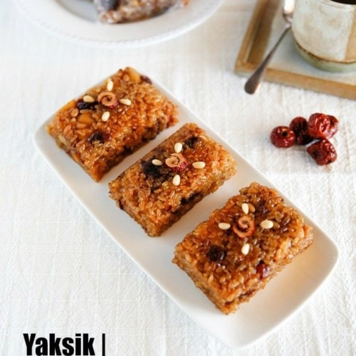 Loại bánh gạo ngọt và béo, một món ăn phổ biến trong mỗi dịp đặc biệt ở Hàn Quốc. Nó được làm bằng sự kết hợp của gạo nếp hấp, mật ong, hạt thông, quả táo tàu khô và hạt dẻ. Sau đó, tẩm với nước sốt màu nâu sẫm bao gồm: đường caramel, quế, nước tương và dầu mè. Bánh được hấp cho đến khi tất cả các thành phần kết dính lại với nhau và nước sốt cô đọng thành một một hương vị rõ rệt hơn. Yaksik dính dính và ấm thường được xúc bằng thìa từ khay, khi ướp lạnh sẽ dễ dàng cắt thành hình vuông và có thể ăn bằng tay.