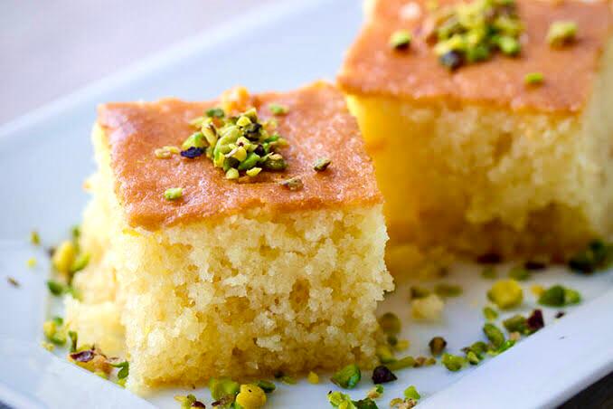 Là một món tráng miệng cổ điển của Hy Lạp được làm từ semolina, đường và bột mì, sữa chua. Tùy thuộc vào cách chế biến khác nhau sẽ cho thêm một số các hương liệu như: vani, vỏ chanh hoặc nước hoa hồng. Loại bánh này có vị ngọt đặc trưng bởi sau khi bánh nướng xong sẽ được mang đi nhúng vào si rô đường. Món tráng miệng thường được chuẩn bị cho các lễ kỷ niệm và lễ hội.