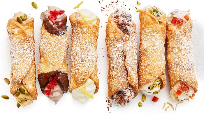 Là một món bánh được bắt nguồn từ người dân Sicily nhưng lại có hương vị khác hoàn toàn so với bánh Cuccidati nhiều màu sắc. Bánh Cannoli Sicily là một loại bánh xốp mềm mại được cuộn tròn quanh các thanh kim loại rồi đặt trong một chiếc chảo rán vàng. Rồi từ từ nhồi lớp nhân được làm bằng pho mát Ricotta với vani, đường bột vào trong.