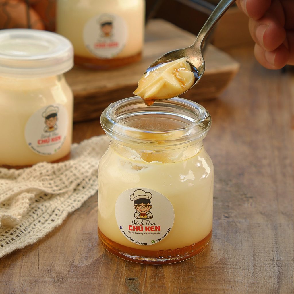 “PHÁ VỠ MỌI LẰN RANH TRUYỀN THỐNG”. Flan Caramel có lẽ mọi người ăn từ nhỏ đến lớn cũng đã quá quen miệng nhưng flan nhà Chú Ken chính là ví dụ điển hình cho việc phá vỡ mọi lằn ranh truyền thống. Từ chiếc vỏ đựng bằng thuỷ tinh mang trên mình thông điệp bảo vệ môi trường xanh – sạch – đẹp và hạn chế tối đa rác thải nhựa ra bên ngoài, cho đến cái quan trọng nhất chính là hương vị khác biệt hoàn toàn của chiếc bánh. Chú Ken khắc kỉ từng công đoạn đến mức tự tay chọn lựa những quả trứng gà ta tốt nhất và hấp bánh theo một quy luật “không giống ai” đòi hỏi phải canh bếp từng giờ phút. Thành quả cuối cùng, chính là những chiếc bánh mang màu sắc trắng ngà như phô mai, vị ngọt vừa đủ, độ béo ngấm sâu, dậy mùi cực nuột và nhất là “chất” của caramel khác biệt đến mức chỉ cần nếm một ít là sẽ nhớ mãi không quên, khi nó đã đạt đến đỉnh cao của cái gọi là “chưa đến cà phê, chưa phải đường nâu”. Cái đẹp và cái ngon của flan chú Ken đánh chiếm đầy đủ mọi giác quan: từ vị giác, thị giác đến khứu giác, nên dù là thức ăn vẫn tạo được vibe rất riêng, nồng nàn và mượt mịn đến muỗng cuối cùng.