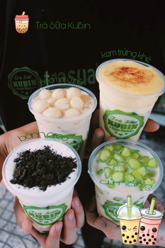 Kubin là một cái tên hết sức quen thuộc đối với team mê trà sữa tại Sài Gòn, đây là một lựa chọn lí tưởng cho những ai muốn đổi gió tìm về vị trà sữa ngày xưa.Trà sữa Kubin có không gian khá nhỏ nên chủ yếu bán theo hình thức take away, buổi tối có thêm ghế nhựa cho các bạn muốn ngồi lại. Mục tiêu của Kubin là đem đến cho khách hàng những món thức uống đa dạng và cập nhật xu hướng. Những ly trà và topping tại Trà sữa KuBin là sự kết hợp từ những nguyên liệu tốt nhất, an toàn, tự nhiên và vệ sinh nhất. Kubin còn mang đến cho bạn nhiều sự lựa chọn ở phần topping, nổi bật là: phô mai viên, trân châu đen, thạch cá, thạch táo, pudding,.