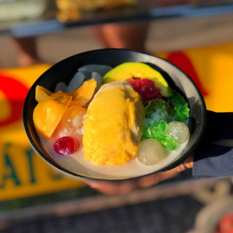 Nếu bạn là fan cuồng của sầu riêng thì không thể bỏ qua món chè này được. Chè có nguồn gốc từ Malaysia- đất nước sầu riêng. Một tô chè dầy ấp topping bên trên thạch củ năng, thạch dẻo, thạch trái cây, mít bào sợi, trái bơ… không quên điểm tô thêm một múi sầu riêng to đùng béo đến tận não. Kèm với nước cốt dừa và đá viên. Một số nơi còn rắc thêm dừa sấy khô thơm nứt mũi.