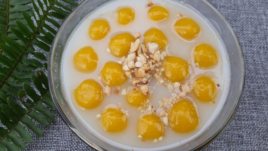 Món chè đơn giản dễ làm này được rất nhiều người yêu thích, dộ dai dẻo của bột nếp và bột gạo kết hợp được bọc bên trong là cơm dừa hoặc đậu phộng hạt tùy sở thích của mỗi người. Chè được ăn kèm nước cốt dừa béo, còn có vị gừng cay cay kích thích vị giác.