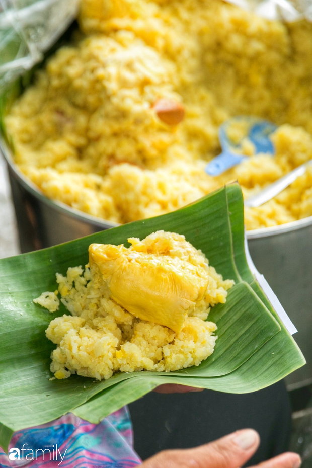 Gánh xôi này đã tồn tại suốt gần 30 năm nay trên con đường Tôn Thất Đạm quận 1. Đối với những ai yêu thích sầu riêng thì chắc chắn không thể bỏ qua món xôi lạ miệng này. Sự hòa quyện giữa vị thơm đặc trưng và xôi đậu xanh dẻo bùi tạo nên ấn tượng khó quên với thực khách ngay từ lần đầu thưởng thức. Tất cả mọi thứ đều do tự tay cô Hà làm, đến hành phi cũng thế, nên mùi rất thơm, rất ngậy chứ không bị gắt như loại mua người ta làm sẵn. Món xôi vò sầu riêng của cô rất đắt hàng, vị không quá béo, không quá ngấy và không nặng mùi sầu riêng như những chỗ khác. Với những thực khách là tín đồ sầu riêng thì món xôi vò này thích hợp thỏa mãn niềm đam mê thứ quả miền nhiệt đới. Vừa ăn xôi vò, vừa nhấp nhám múi sầu riêng thì khó lòng mà cưỡng lại. Ngoài ra cô còn bán thêm các món khác như: xôi gấc, cơm rượu, các loại xôi chè,…