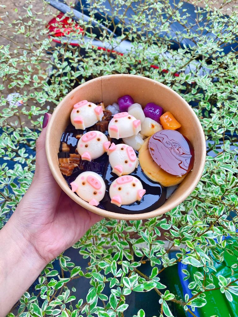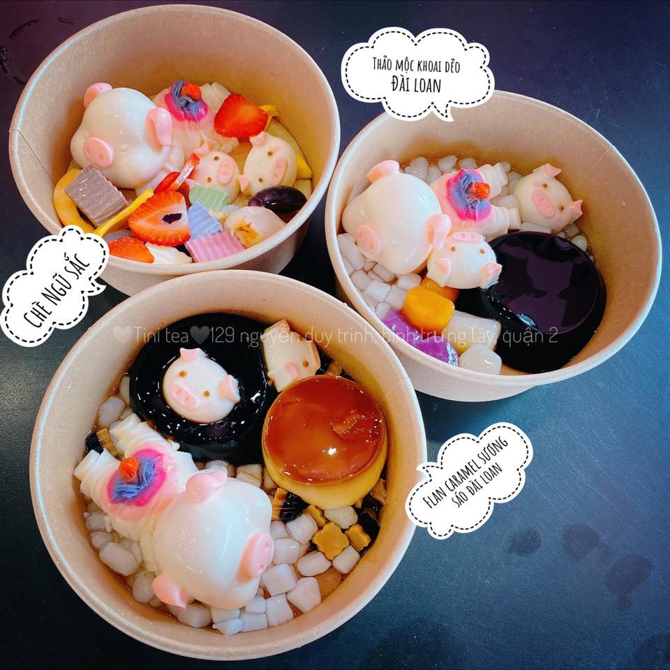 Còn được gọi với cái tên thân thương ” Chè bé heo” vì những viên thạch ở đây có hình bé heo hồng mập ú xinh muốn xĩu. Những viên chè khoai dẻo quẹo đủ màu sắc tím vàng nhìn vô cùng hấp dẫn. Oử đây menu phong phú có nhiều món cho bạn lựa chọn ngoài chè khoai dẻo còn có các loại trà sữa với đủ mọi loại topping.