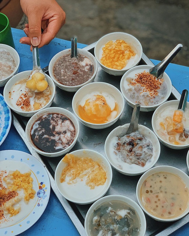 Với hơn 40 năm tên tuổi, gắn liền với tuổi thơ, thời sinh viên của bao thế hệ, chè mâm Sư Vạn Hạnh có hơn 16 loại chè đặc trưng khác nhau như bà ba, táo xoạn, khoai môn, đậu đỏ, mè đen, đậu xanh, đậu trắng, ngô, chè ĩ, đậu đen, chuối, rau câu, bánh flan… Đa dạng và phong phú, chè lại vô cùng dễ ăn, đậu mềm do được ngâm và nấu kĩ qua đêm, độ ngọt vừa phải, đặc biệt nước cốt dừa béo ngậy thần thánh có lẽ chính là ” linh hồn” làm nên thương hiệu ở đây. Thường 7h30 tối là khung giờ cao điểm của quán nên bạn có thể lựa chọn những giờ thích hợp khác mà không cần đợi hay chen lấn.
