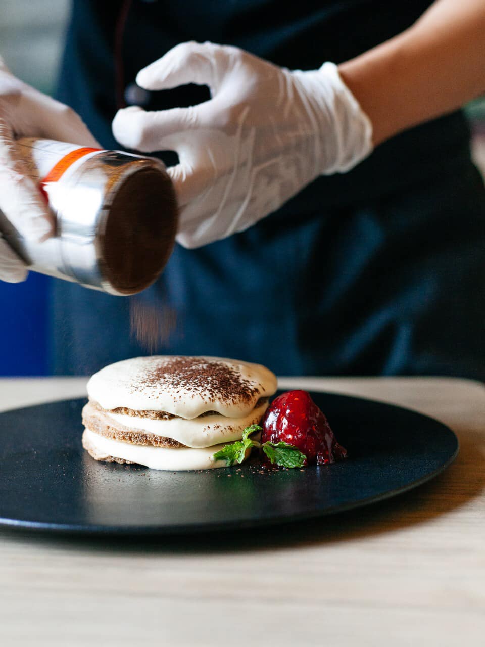 Tiramisu là món tráng miệng có vị cà phê của Ý. Nó được làm bằng những con bọ rùa nhúng trong một cà phê, phủ một lớp hỗn hợp trứng, đường và phô mai mascarpone được đánh bông, có vị ca cao. Tiramisu tốt nhất nên được phục vụ lạnh, và khi kết hợp với một tách cà phê hoặc cà phê espresso, bạn đã trúng số độc đắc. Không có gì nói “hãy đón tôi” hơn một chiếc bánh Tiramisu thơm ngon để kết thúc bữa ăn. Và tất nhiên món tráng miệng này cũng đã “ len lỏi “ vào Sài Gòn  từ các địa điểm dưới đây sẽ làm bạn không ngừng bất ngờ về độ ngon của món bánh tráng miệng lừng danh này.